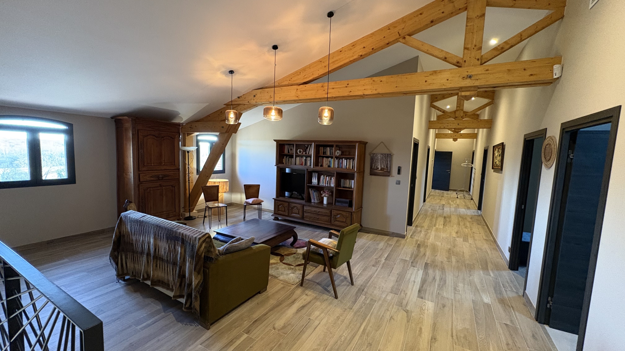 Un second salon, plus intimiste, complète l’étage.